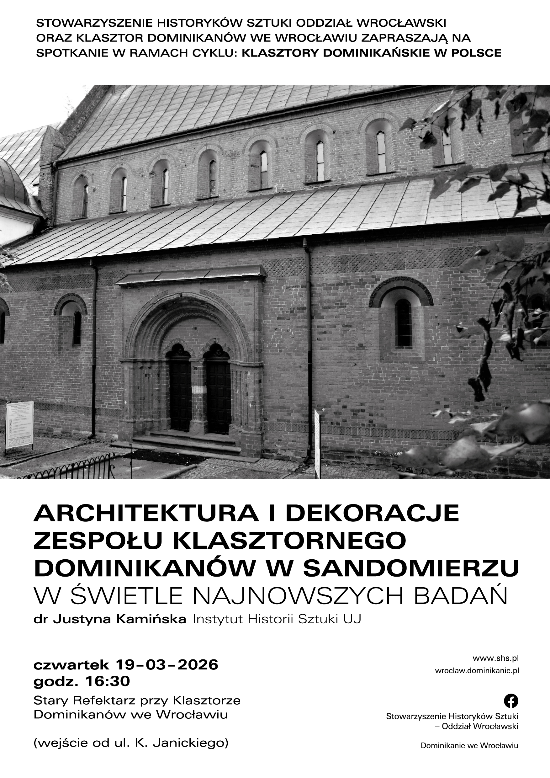 Serdecznie zapraszamy na kolejne spotkanie z cyklu „Klasztory dominikańskie w Polsce”, wykład dr Justyny Kamińskiej z Instytut Historii Sztuki UJ „Architektura i dekoracje zespołu klasztornego dominikanów w Sandomierzu w świetle najnowszych badań”.