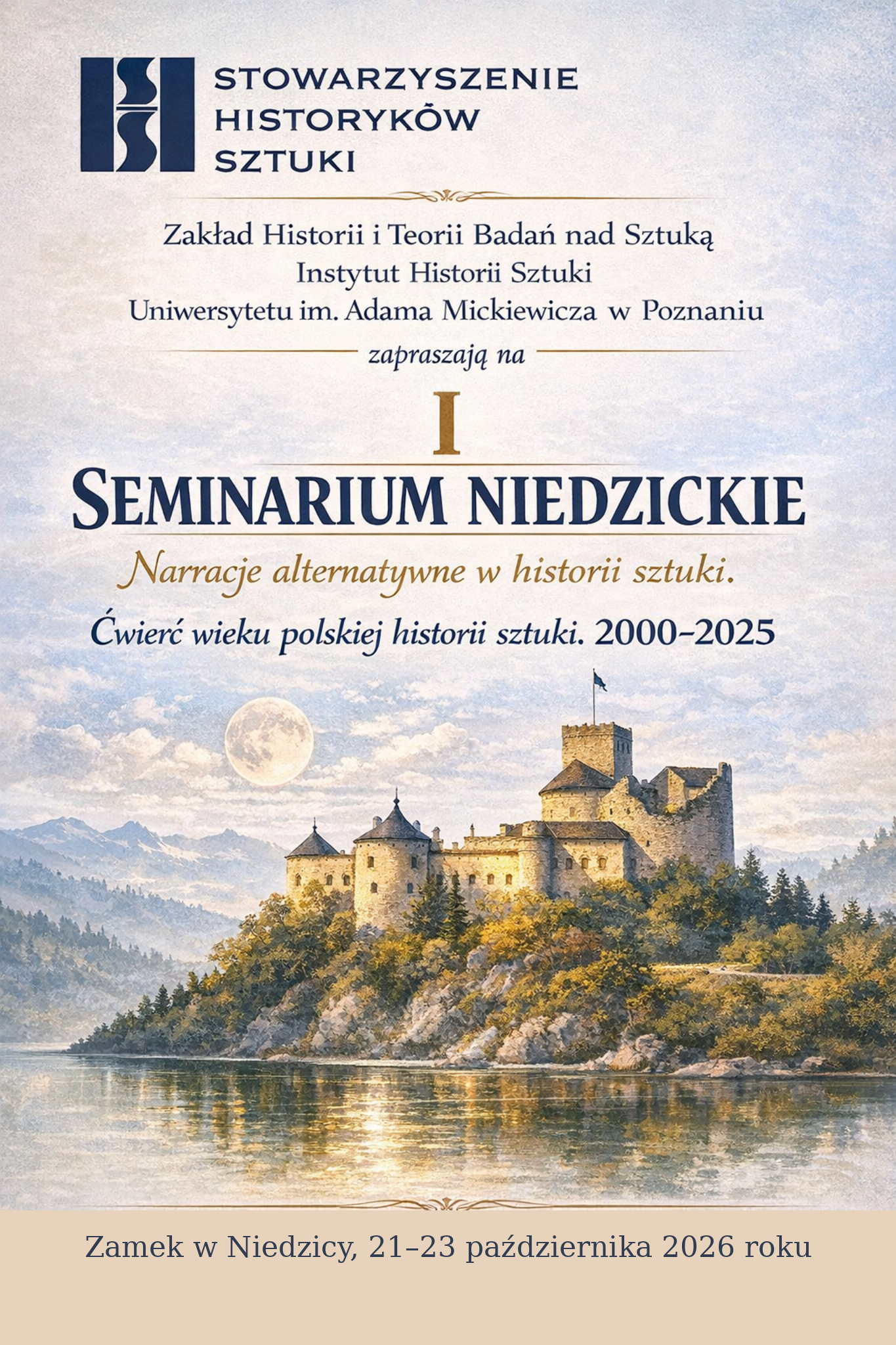 w związku ze zmianą pierwotnie planowanego terminu, z przyjemnością załączamy Państwu Call for Papers na seminarium naukowe „Narracje alternatywne w historii sztuki. Ćwierć wieku polskiej historii sztuki. 2000-2025”, organizowaną przez Stowarzyszenie Historyków Sztuki oraz Zakład Historii i Teorii Badań nad Sztuki w Instytucie Historii Sztuki UAM. Seminarium odbędzie się w dniach 21–23 października 2026 na Zamku w Niedzicy.