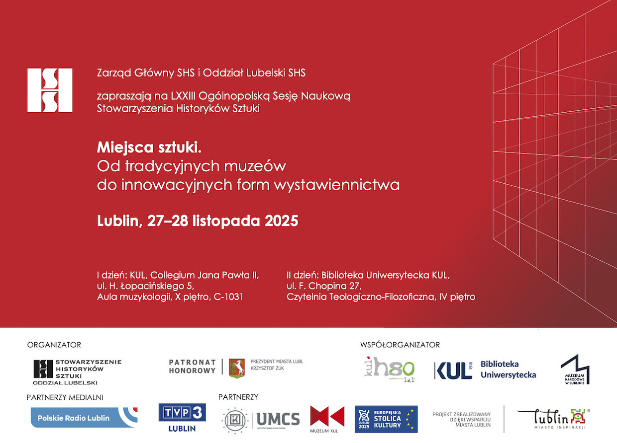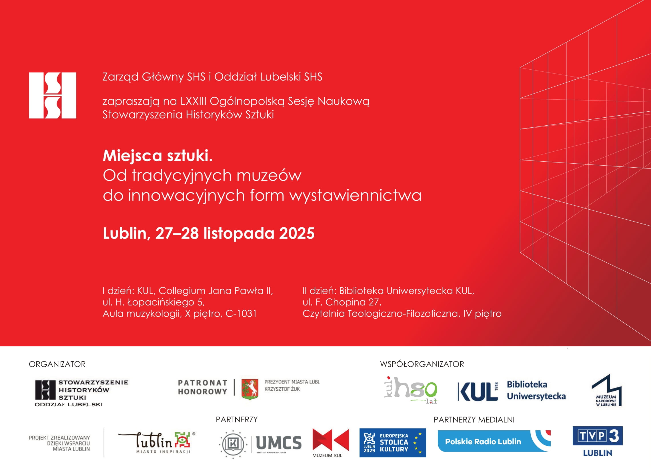 w imieniu Zarządu Główny SHS i Oddziału Lubelskiego SHS, zapraszamy Państwa do wzięcia udziału w LXXIII Ogólnopolskiej Sesji Naukowej Stowarzyszenia Historyków Sztuki „Miejsca sztuki. Od tradycyjnych muzeów do innowacyjnych form wystawiennictwa”