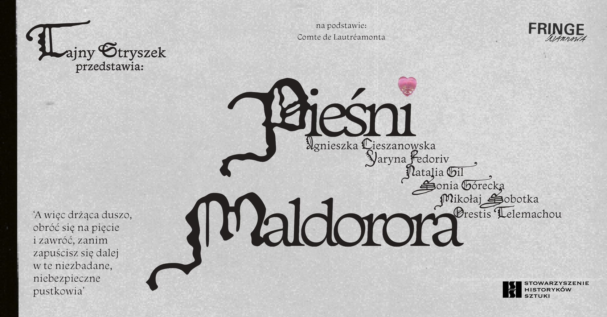 Serdecznie zapraszamy na wernisaż i wystawę „Pieśni Maldorora”, które będzie miało miejsce w naszym Stowarzyszeniu – w Bibliotece im. prof. Jana Białostockiego! “Pieśni Maldorora” stanowią punkt wyjścia dla dzieł prezentowanych na wystawie. XIX-wieczny poemat, inspirowany „Wielką Improwizacją” Mickiewicza, to radykalny, proto-surrealistyczny utwór – pełen brutalnych wizji, bluźnierstw i groteski – który próbuje rozpoznać dobro poprzez akty zła.